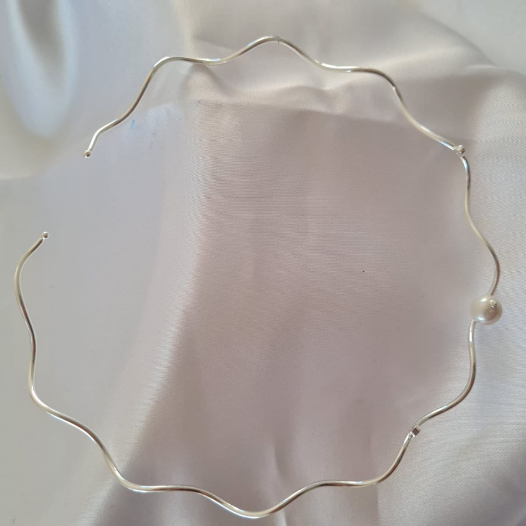 Uma combinação harmônica entre formas orgânicas e o brilho clássico da pérola. O choker rígido com ondulações suaves e pérola central fixa traz um toque moderno e sofisticado ao colo, enquanto os brincos de argola com pérola pendente completam o conjunto com leveza e movimento. Um duo que imprime presença com delicadeza.
