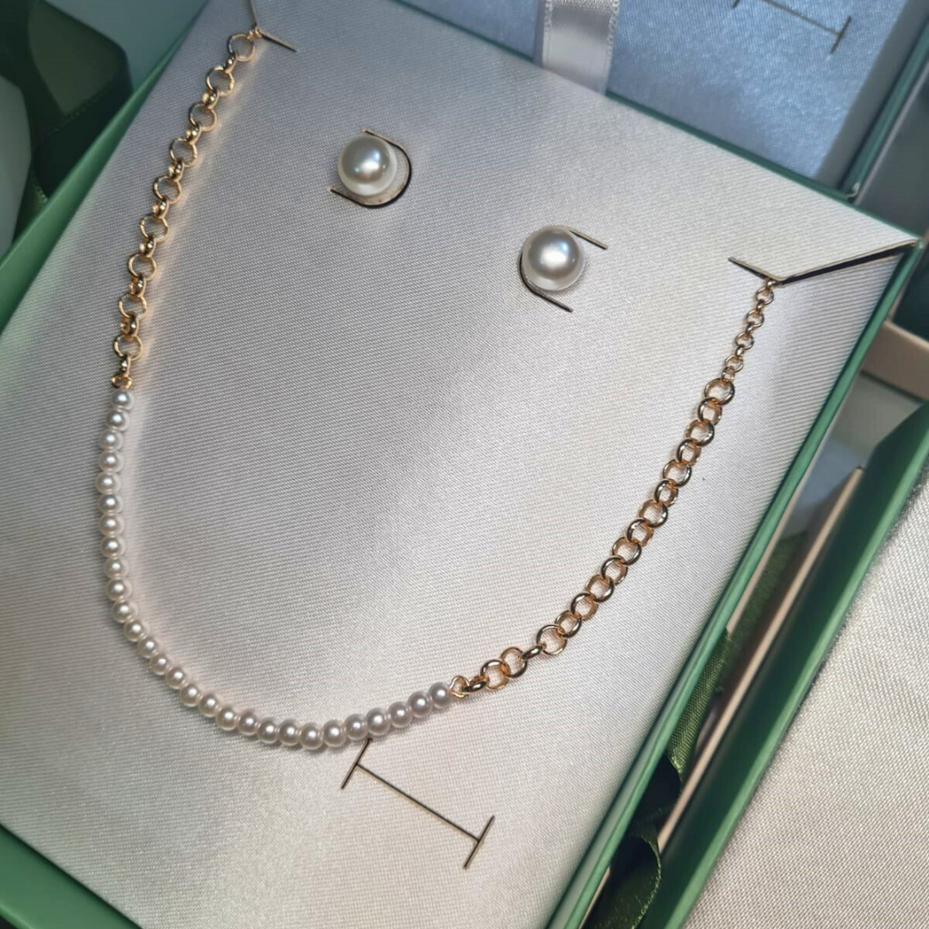 O Conjunto Elo & Pérolas traz a perfeita harmonia entre tradição e modernidade. A delicadeza das mini pérolas contrasta elegantemente com a força do elo português, criando um visual sofisticado, leve e cheio de personalidade.